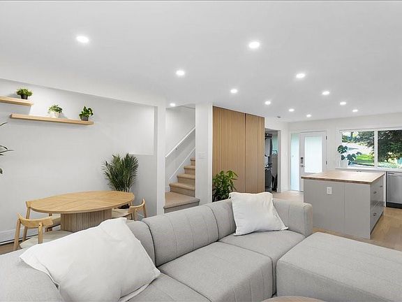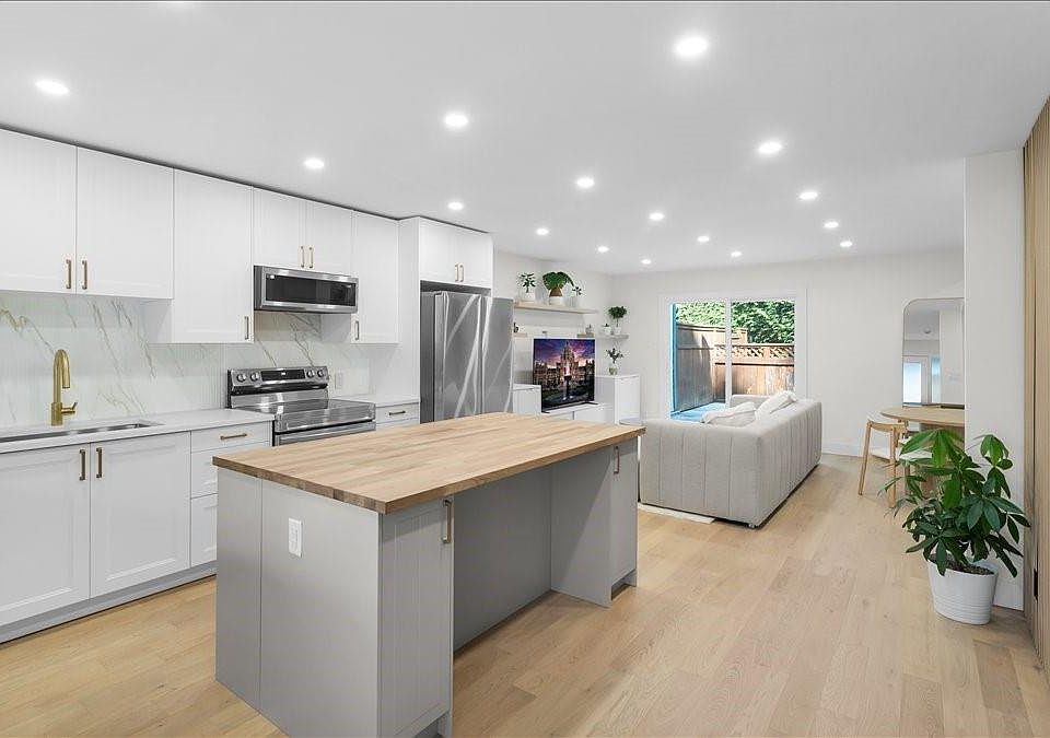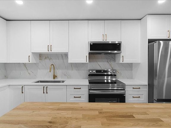 This beautifully renovated 4-bed, 2-bath home has been thoughtfully updated from the studs. This residence has undergone extensive professional renovations with permits, starting with complete asbestos removal and all-new drywall. Enhanced comfort & quiet were prioritized with upgraded insulation throughout, including between common walls, floors, bedrooms, & the attic. The home features new energy-efficient windows, a stylish front door, and a sliding patio door. Inside features engineered hardwood floors, new carpet, a brand-new kitchen with quartz counters, a butcher block island, paired with new appliances. Both bathrooms are completely new with ceramic tile floors and tub surrounds. Electrical and plumbing systems have been substantially updated, including new lighting, baseboards, thermostats, fixtures, sinks and faucets. Every element has been professionally completed, blending quality craftsmanship with contemporary style—making this a move-in ready home you won’t want to miss.