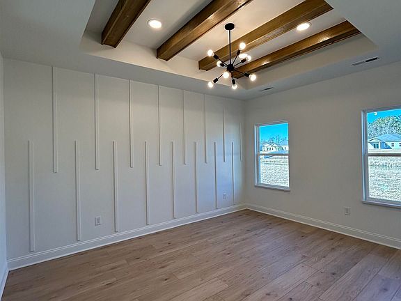 This Custom style 3 bedroom plus office, 2 bathroom RANCH floor plan exudes elegance and modern upgrades. Home features an open floor plan with beautiful beams in ceiling, granite waterfall kitchen island, custom interior doors painted a darker tint to stand out, LVP Flooring throughout the home, custom upgraded tile in bathrooms and laundry room, front two bedrooms have carpet, elegant and modern lighting fixtures and plumbing fixtures throughout, custom wall trim outs, covered porch and more! LOW HOA! Come see this home! Centrally located close to major highways, minutes from shopping, grocery, fast food, gas stations, schooling, golfing, etc.
