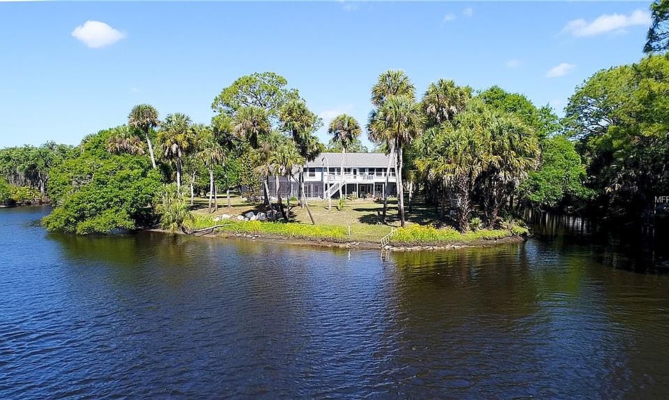 Price adjustment of 10 percent from motivated seller who needs to move to Colorado before Winter. Venice's most treasured areas, this private two-story 3 bed, 3 bath home along the famous Myakka River. Sturdy Cement Block first floor. Zoning allows one horse, goats and chickens. Surrounded by breathtaking mature trees providing privacy while relishing in the tranquil lifestyle it offers. A picturesque front porch welcomes you into the home featuring ceramic tile and boasting cathedral ceilings that are designed around beautiful brick walls and grey wash wood. You'll delight in your lovely kitchen showcasing a timeless touch of brick backsplash set beside the great room and dining room offering plenty of open space for mingling while hosting guests. Step down to your Florida room and enjoy all the extra space provided while capturing the serene views of the remarkable outdoors. Escape to your master bedroom with ensuite featuring dual sinks and a garden tub. The unique layout of this master bedroom offers an extensive amount of space on a double level setting with views of the river through large wrap around windows. As you host gatherings, you will find the perfect area in your downstairs bonus room, complete with its own wet bar and sliding glass doors to the lanai. Your expansive lanai sits a shimmering pool and wide-ranging space ideal for entertaining among the calming scenery that encompasses this home. Pack your kayaks and canoes for an adventure on the river. Boat ramp access is accessible, new appliance package included.