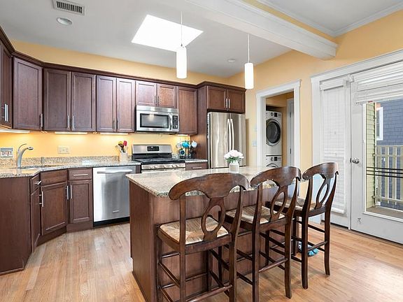 Beautiful penthouse home in convenient South Boston location, offering approx. 872sf of versatile open floorpan, with 2 bedrooms including a guest bedroom with pocket French doors into the living room, ideal for a family room or home office, 2 bathrooms, updated kitchen with stainless steel appliances, skylights throughout capturing an abundance natural light, central heating/cooling, additional storage space in the basement, low condo fee, a private outdoor deck, and roof deck rights. Just a short distance to the beach and the best that South Boston has to offer.