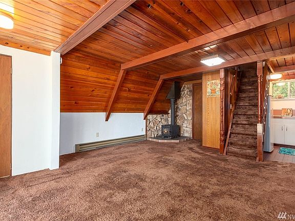 Adorable and affordable living in Grapeview just steps to the community beach, kayak launch and picnic area! Take your coffee on the front Deck or spacious Living Room with Slider! The cozy Kitchen is perfect for weekend getaways. High ceilings await upstairs, with space for a bed or two. More storage in outbuilding. Ample parking in the driveway for multiple cars & smaller RV/boat. Perfect cabin for weekend getaways or build your dream home on this corner lot- Buyer to verify. Tour today!