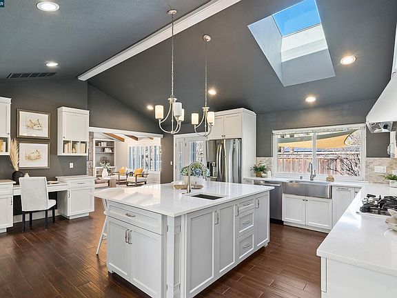 - Features: Breakfast Bar, Counter - Solid Surface, Dishwasher, Garbage Disposal, Gas Range/Cooktop, Island, Microwave, Oven Built-in, Pantry, Refrigerator, Skylight(s), Updated Kitchen