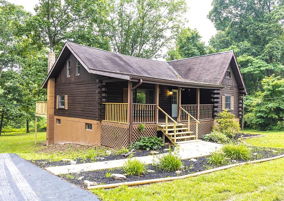Have you been looking for a log cabin with a little bit of land? If so, this may be the home for you! This 3 bedroom, 1 bath home offers an updated kitchen and new flooring throughout the home. Step out onto the back deck for a scenic view of the surrounding property. With vaulted ceilings and original wood, this home has a cozy feel. The third bedroom is a loft style and overlooks the great room. In the walkout basement, you will find space for a wood burning stove, rec room, workshop or even finish into another bedroom. Complete with blacktop driveway and log storage building that matches the home.