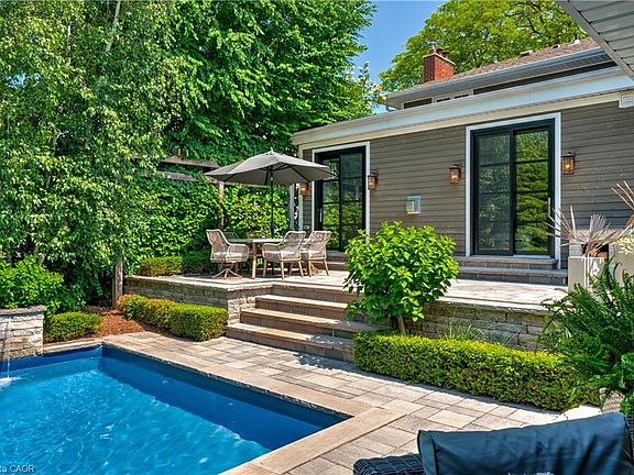 Curb appeal that draws you in, and a backyard you’ll never want to leave! Welcome to Burlington’s desirable core, where this 4+1 bedroom, 3.5 bathroom home delivers space, function, and a backyard that feels like a private escape! Inside, hand-scraped hardwood floors lead you through sun-filled spaces, starting with a formal dining room perfect for gatherings. The well-appointed kitchen features quality cabinetry, granite counters, and an oversized island that anchors the home. It opens to a generous great room with a coffered ceiling, stone fireplace, and dual walk-out to the backyard. A main floor bedroom or office, mudroom with laundry and garage access, and an a stylish powder room complete the main level. Upstairs, the primary suite features a walk-in closet and an ensuite with a soaker tub overlooking the yard and a glass shower, plus two additional bedrooms and a full bath. The finished lower level offers a spacious family room, additional seating area, the fifth bedroom, and a full bath. Step outside, and it only gets better: an incredibly private, meticulously landscaped backyard with mature trees, lush gardens, dozens of flourishing hydrangeas, elegant stonework, and low-maintenance turf. The oversized porch with built-in BBQ area, in-ground pool (newer liner, pump, and cartridge filter), waterfall feature, and covered outdoor lounge with gas fireplace make it the perfect space to gather or unwind. Truly, a home that captures attention! Luxury Certified.
