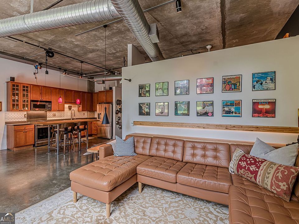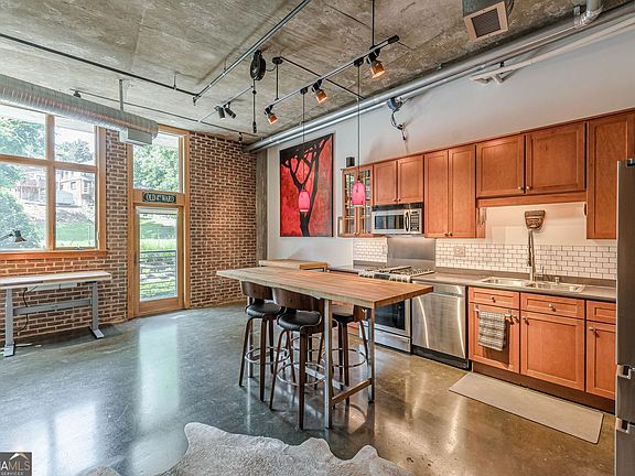 Welcome to Glen Iris Lofts, where authentic urban living meets unbeatable convenience in Atlanta's vibrant Old Fourth Ward. This spacious 1-bed, 1-bath loft features soaring 12-foot ceilings, a wall of windows, polished concrete floors, exposed brick, and ductwork-delivering true industrial character with modern comfort. The open floor plan includes a flexible dining nook or home office, a sleek kitchen with Corian countertops perfect for entertaining, and an owner's suite with granite in the bathrooms, a soaking tub, separate shower, Elfa closet system, and extra storage. Thoughtful upgrades include designer-installed LED and specialty lighting throughout, plus a custom wall shelf with built-in storage and integrated LED lighting-adding both style and function. Step out onto your private patio for morning coffee or evening cocktails. Enjoy boutique amenities: a saltwater pool, assigned covered parking, gated entry, and a pet-friendly community. The financially strong HOA covers Google Fiber, gas, water, sewer, trash, pool, and a fenced dog run. Live steps from the BeltLine, with Ponce City Market, Piedmont Park, Krog Street Market, and Inman Park all within easy walking distance. Explore Atlanta's best dining, shopping, art, and green spaces right outside your door. At Glen Iris Lofts, park your car and experience the best of intown living-where city energy, neighborhood charm, and modern loft style come together seamlessly.