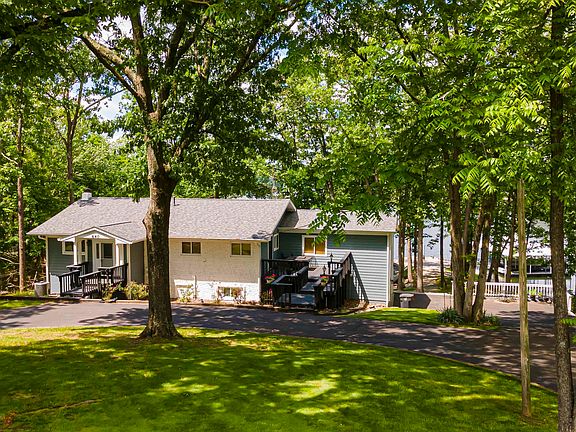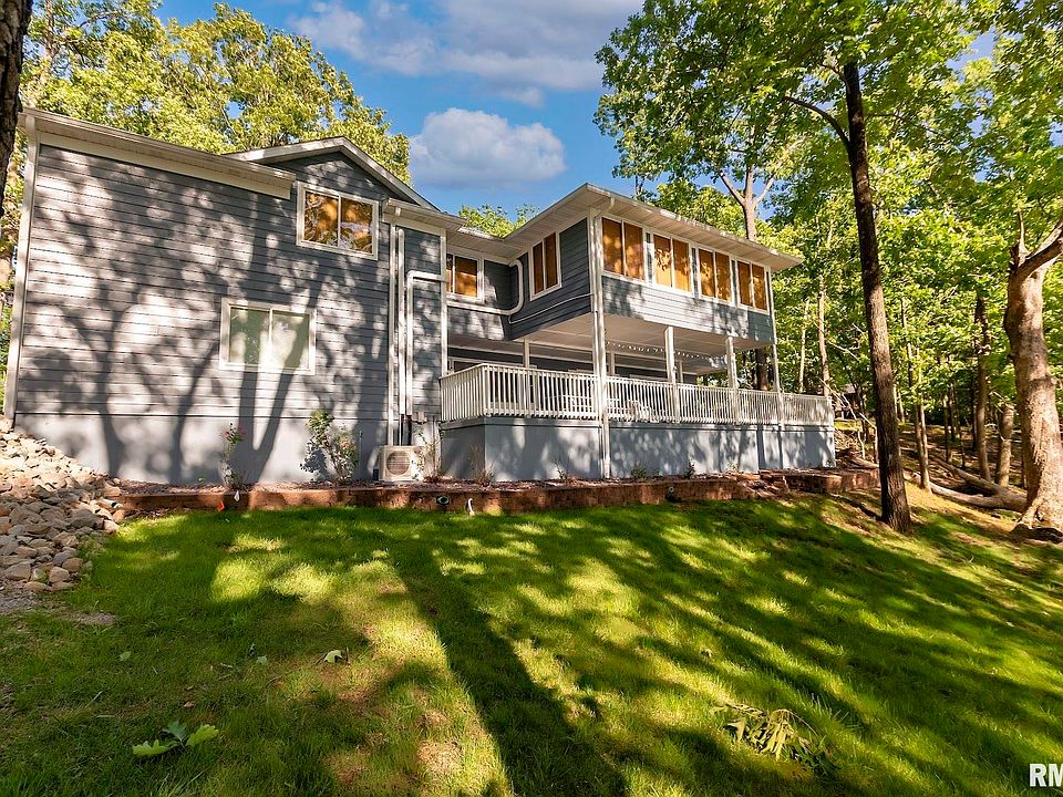 Waterfront home on the Lake of Egypt with privacy! Nestled among some trees, perched on 1.6 acres, this home has amazing lake views, an incredible dock, detached oversized garage, circle drive with lots of parking AND over 3700 square feet of living space. Pack your bags, that’s all you need to do to enjoy this Lakehouse as it comes mostly furnished. The home has 4 bedrooms and 3 bathrooms, kitchen/dining, living room, sunroom and laundry on the main level. The lower level provides additional entertaining space that includes a bar/kitchenette, rec area, family room, bathroom and storage. The expansive back porch is partially covered and is an incredible place to grill out and watch the sunset. The dock is massive as it expands over 60ft wide and 30 ft deep with 3 slips, (1 with a lift, 1 partially filled for sitting area and 2 pwc docks) and 1 open slip. The home includes a 2 car attached garage with an additional 44X36 detached garage. Since purchasing the home in 2020, the owners have installed a new roof and gutters, new paint inside and out, basement completely remodeled,blown in insulation in attic, new washer/dryer, new tankless water heater, new dishwasher, new basement refrigerator, new garbage disposal, new faucets on most sinks and showers. An ozone cleaner was installed on gas furnace. Clearwave fiber internet keeps you connected to the world as you relax and enjoy the tranquillity of lake life in a no wake cove, overlooking the main lake.