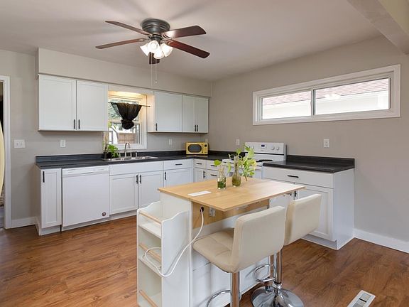 Check out this affordable, nicely updated one-story home next to Galloway Park. It features a privacy-fenced yard and a spacious living room that is open to the kitchen, which boasts ample cupboards and a movable island for added functionality. The full bathroom includes main floor laundry. The home offers four spacious bedrooms, with one at the rear of the home that could also serve as a second living space. The backyard has a patio and includes two sheds, and an oversized one-stall garage. Many updates have been made, including new windows, flooring, and kitchen cabinets in 2019. All appliances, including the washer and dryer, are included. Please feel free to call your favorite agent today to schedule a private showing. We are also hosting an open house on Sunday, October 12th from 2:00-3:30 P.M.