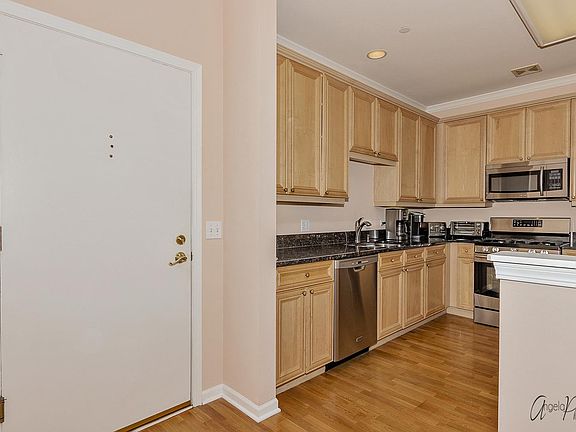 This is it!!! Look no more!! Fantastic first-floor condo with 2 bedrooms/2 baths and a flexible open floor plan and additional den/office with French Doors. Light and bright with a nice sized patio. Brand New HVAC, newer appliances, 42" maple kitchen cabinets, granite countertops, hardwood flooring and recently painted. Newer blinds, 9 ft. ceilings, crown molding, walk-in closets, split bedrooms. Large master bedroom with lots of closet space and double vanity. In-unit laundry, heated garage and storage. New WiFi Thermostat. Great location and close to metra, restaurants and shopping. Near new Wheeling Town Center. Special assessment was paid.