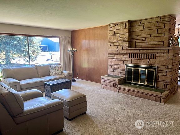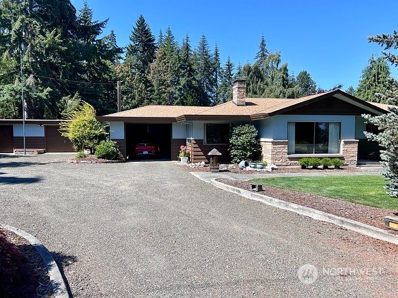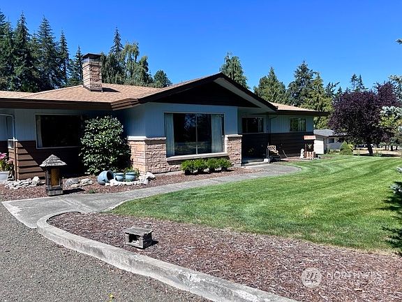 Impeccably maintained one-level home on one flat, private acre. Main level living has it all: 3BR/2 BA with eat-in kitchen, formal dining, living room w/ wood burning fireplace, and laundry room. Attached one-car garage + oversized 2-car detached garage with drive through garage door for easy access to backyard. Small detached room with french doors - endless ideas! Covered patio to enjoy the beautiful landscaping. Close to Shopping/Olympic National Park.