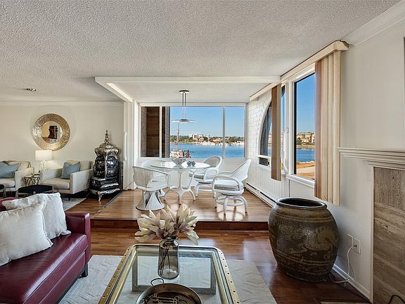 OPPORTUNITY PURCHASE – OCEANFRONT LIVING IN JAMES BAY! Oceanfront living for $441,000 below BC Assess in this offering at Pier One. Nearly 2,000 sqft of well laid out living space w 2-bed, 2-bath - feels like a bungalow! Enjoy breathtaking ocean views from great rm, dining & both beds. Generous kitchen features walk-in pantry, +freezer — entertain. Expansive living & dining w mirrored wall, cozy fp, wood flrs. Primary bed w extensive built-ins, multiple closets, luxury ensuite w dual sinks, soaker tub, separate shower. 2nd bed + den w ocean view. Notable:2 enclosed balconies (easily converted back - oceanfront spaces), wood, tile flooring throughout, large in-suite storage, plumbed for in-suite laundry. 2 secure parking stalls, lg storage locker, laundry on each floor. Well-managed, pet & rental friendly building w library & media rm, private 24-slip marina, EV charging, secure visitor parking — all just steps to the Harbour Walkway, Fisherman’s Wharf, and main transit routes. Book Now