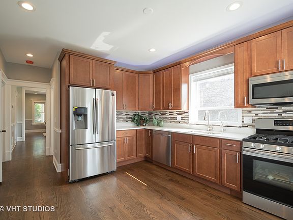 Beautifully remodeled Chicago Bungalow, 4 Bedroom 2 Bath with an office for today's current work situations. Professionally redone Electric, Plumbing along with new Heating and Air Conditioning. Brand new Hardwood floors through-out and new Kitchen with 42" cabinets, antibacterial Quartz countertops, and new Samsung Stainless Steel appliances. Recessed lighting and chair moldings around the house. The basement consists of a large f+amily room, 4th bedroom, and laundry room/mudroom, and completed with a full bathroom and potential for wine cellar/cigar storage. Brand new 2 Car Garage with new stamped concrete walkways around the house with new fences. IHDA down payment assistance program is available for financing help. Reach out to see if you qualify for up to a potential $10,000 grant for downpayment and closing cost assistance.
