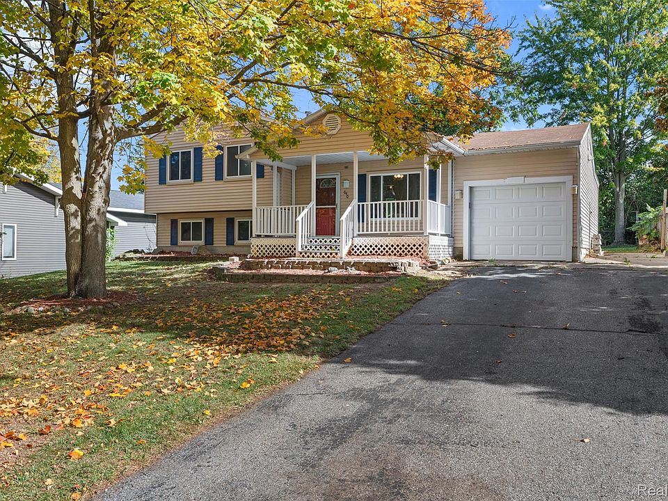 A Remodeled Charmer located in the Heart of Perry! Perched on a hill, surrounded by mature trees, the welcoming covered front porch invites you in to this stunning home. Upon entering, you will notice the cozy nook and bench, perfect for hanging coats, backpacks and storing shoes. The home boasts so many updates, including new flooring and paint throughout. The cozy living room offers space to relax or entertain and features a wooden accent wall. Stepping towards the dining area, tasteful blonde luxury vinyl plank flooring invites you in to the completely renovated kitchen, complete with new grey cabinetry, all new stainless steel appliances, including gas range, as well as sparkling granite countertops that pair well with the subway tile backsplash. New light fixtures throughout as well! You can enter the backyard and deck through the sliding glass door in the dining room, or step into the surprisingly huge garage from the kitchen. What appears to be a 1 car is actually a deep garage with plenty of room for 2 and space for extra storage above. Tall cathedral ceiling with fan in the workshop area and new Garage Door. Back inside, the upper level boasts a brand new full bathroom with updated LVP flooring, new vanity, toilet and shower/ bath combination. Three good sized bedrooms, all with new carpet and ample storage, round out the upper level. The lower level offers an open and cozy family room, which would also serve as a great playroom or flex space. Open the door to the dedicated laundry room with an extra half bathroom, also just renovated. The crawl space is cement and tall enough to offer storage options. Furnace recently serviced with new control board. The backyard is fenced and is the perfect size for manageable upkeep but plenty of space for privacy and play. Walking distance to Perry Schools, this delightful house has it all and is waiting for you to make it your home. Fall for this house and be moved in for Winter!