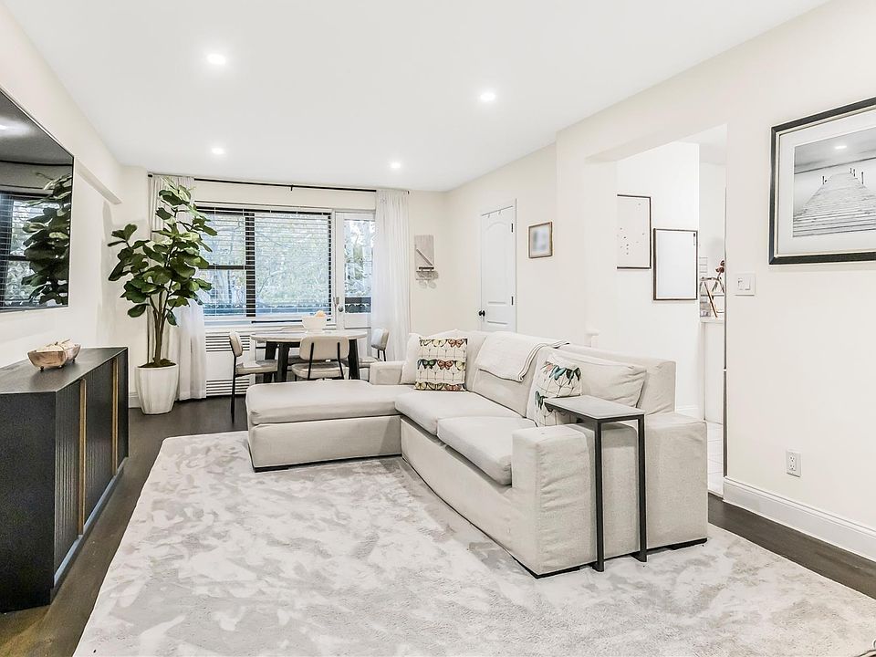 Beautifully updated Junior 4 with assigned parking! Welcome home to a large entry foyer that flows seamlessly to a bright, open living/dining area with access to a private balcony. Enjoy morning coffee, dining al fresco, and sunsets. The renovated kitchen offers stainless steel appliances, marble countertops, and sleek subway tile backsplash. The spacious bedroom includes 2 closets, and the updated full hall bath offers a polished vanity and a stall shower with chevron pattern subway tile. A flexible bonus room is ideal for an office, den, or guest space. Complex amenities include a fitness center ($10/mo), outdoor pool, laundry room, playground, free storage room (when available), and a free bike room. Close to Glen Island Park, beach, New Rochelle Metro North, local buses, and shopping. Enjoy an ideal living space with amenities and conveniences right at your fingertips.