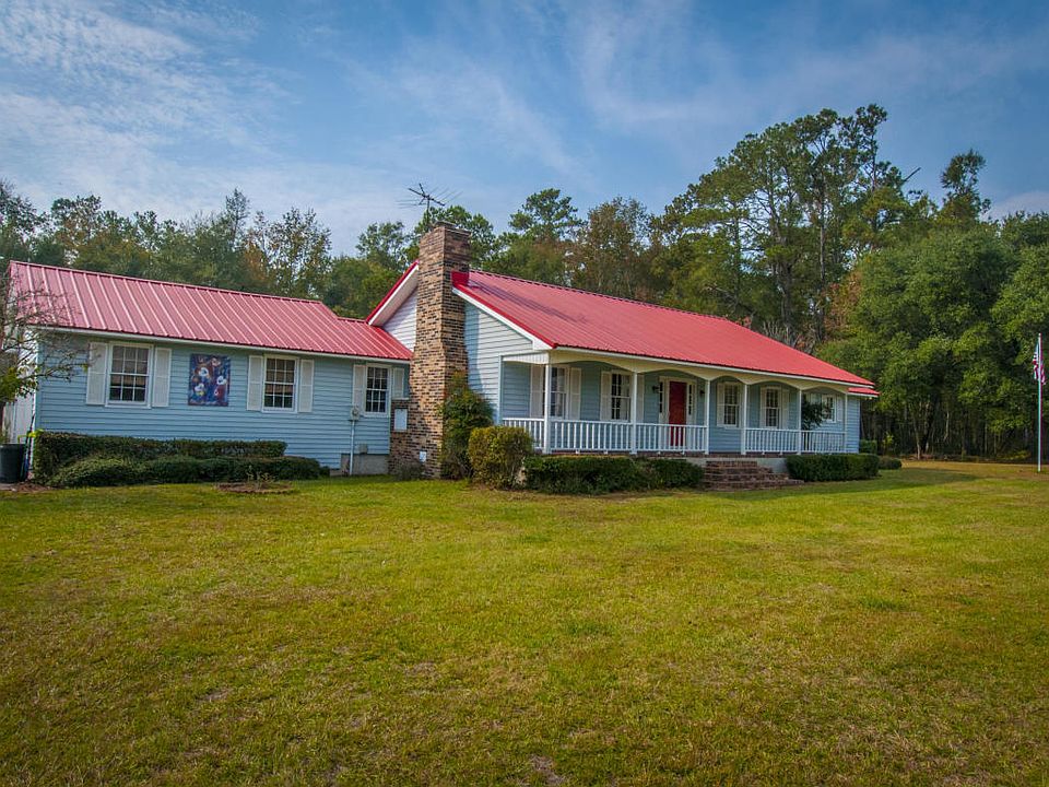 A rare find under $300K: country living on 6acs with few neighbors - ranch home with cottage behind - both with metal roofs. New carpet in LR/Hall. Newer HVAC. ~900sf cottage with mini kitchen, BR and 3/4 bath. Approximately 1/3 of 6.5acs cleared with adjoining wooded lot. Acres of cotton fields is the view from the front porch.