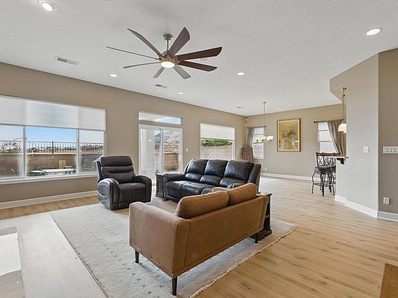 Spectacular Views & Premium Upgrades! Experience luxury living in this previous model home, showcasing breathtaking views and high-end upgrades throughout. Located in New Mexico's Premier Active Adult Community, this home offers an elegant yet comfortable lifestyle in a prime location.Key Features include: Beautiful luxury vinyl flooring throughout, Spacious split floor plan with an additional casita/office--perfect for guests, work, or hobbies, Cherry cabinets & built-ins around the fireplace, office & casita, Gourmet kitchen with a tumbled stone backsplash, Luxurious master bath with a separate shower & tub & tumbled stone tub/shower surround, Timeless views that will never change. Don't miss this opportunity--schedule your private showing today!