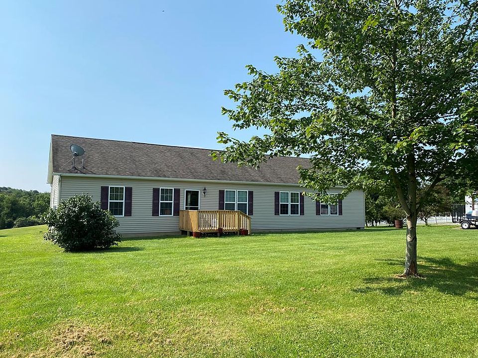 Beautiful country home with breathtaking views of the Huntington Hills! Come and take a look at this 3 bedroom, 2 bath home with open concept kitchen, spacious family room with propane fireplace, nice laundry room with a pantry and covered back porch right off the kitchen area. Property is situated on 5 acres, 3 car detached garage and new front deck. Don't miss out on this home, call today!