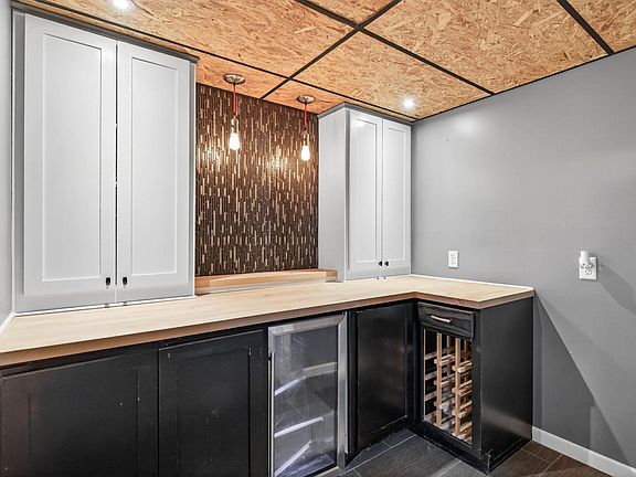 The lower level keeps the real chill vibe going. Huge lookout windows light up the family room, and the bar behind the family room is flexible. It's a legit bar now, but you could turn it into a coffee bar or even a home movie concession setup.