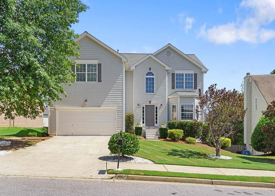 Welcome home to a dramatic two-story entry that opens into a spacious great room with a cozy gas fireplace. The bright, open-concept kitchen offers stained cabinetry, generous counter space, stainless steel appliances, and more. A formal dining room flows seamlessly into the formal living room/library, which can also serve as a home office on the main level. The oversized primary suite upstairs features a beautifully updated bath with a walk-in tiled shower and soaking tub. Secondary bedrooms are generously sized. Step outside to a large wooden deck overlooking the fully fenced, extra-large sodded backyard perfect for outdoor entertaining, pets, and play. The home also includes a full daylight terrace level, providing abundant storage with plumbing already stubbed for a full bath. This versatile space can easily be finished as an additional entertainment area, bedroom, or private guest suite. Move-in ready, the home showcases hardwood floors throughout the main level, updated bathrooms, and recent improvements including a new energy-efficient HVAC system. The roof was replaced in 2017 for added peace of mind. Located in the highly sought-after school district of Settles Bridge Elementary, Riverwatch Middle, and Lambert High, this home is the perfect blend of comfort, updates, and location.