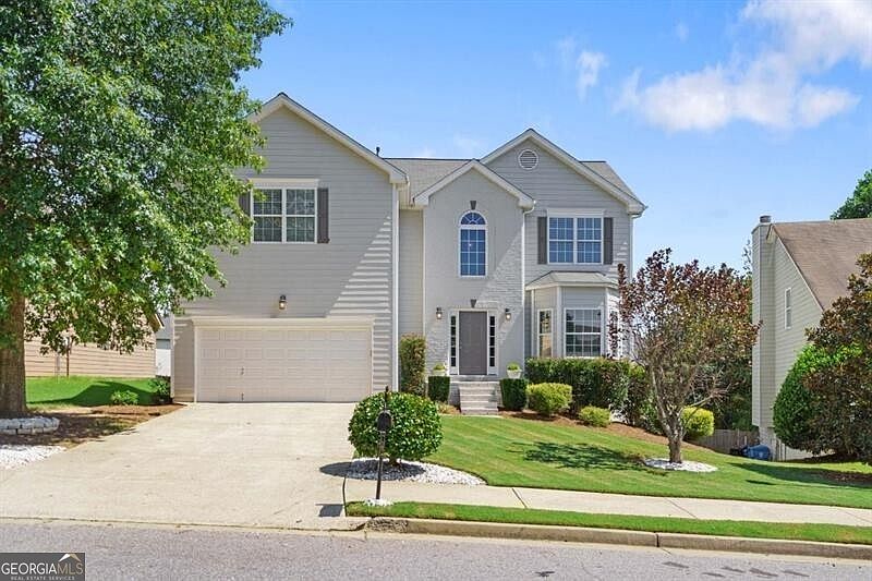 Welcome home to a dramatic two-story entry that opens into a spacious great room with a cozy gas fireplace. The bright, open-concept kitchen offers stained cabinetry, generous counter space, stainless steel appliances, and more. Enjoy the added convenience of a kitchen refrigerator, an extra refrigerator in the garage for additional storage, and a washer and dryer in the upstairs laundry room, all included with the home! A formal dining room flows seamlessly into the formal living room/library, which can also serve as a home office on the main level. The oversized primary suite upstairs features a beautifully updated bath with a walk-in tiled shower and soaking tub. Secondary bedrooms are generously sized. Step outside to a large wooden deck overlooking the fully fenced, extra-large sodded backyard perfect for outdoor entertaining, pets, and play. The home also includes a full daylight terrace level, providing abundant storage with plumbing already stubbed for a full bath. This versatile space can easily be finished as an additional entertainment area, bedroom, or private guest suite. Move-in ready, the home showcases hardwood floors throughout the main level, updated bathrooms, and recent improvements, including a new energy-efficient HVAC system. The roof was replaced in 2017 for added peace of mind. Located in the highly sought-after school district of Settles Bridge Elementary, Riverwatch Middle, and Lambert High, this home is the perfect blend of comfort, updates, and location.