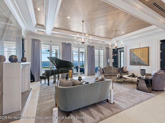This ocean to lake coastal property is unlike any other, where 150 feet of ocean frontage meets the elegance of new construction completed in 2020. Immediately upon entering, you're drawn to the eastern facing waterviews in the living room filled with sunshine. This home offers several well-appointed bedrooms and baths designed to offer space, comfort and privacy. Additionally you will find a temperature controlled wine room, his & her powder rooms, gym and spa room and a most inviting bar and lounge. Outside, discover several thoughtfully landscaped gardens, verandas and a summer kitchen perfect for enjoying ocean breezes or head over to the intracoastal for sunsets on the dock which houses two lifts. This oceanfront compound includes two additional structures beyond the main residence; a surveillance and guard house for enhanced security and state-of-the-art stainless steel chef's kitchen, and a charming guest house. This property presents a rare opportunity to indulge in everything that represents coastal living.
