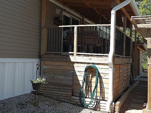 Newer mobile home with 3 bedrooms, 2 bathes, and a bonus room currently used as an office. Kitchen appliances include stove, refrigerator and dishwasher. 2" plantation blinds on all windows, gutters front and back, storage shed, carport, 2 car guest parking on lot, and covered sitting porch that overlooks a large open deck plus a pergola area all for outdoor entertaining. Lots of home and amenities for $125,000. Located in Northwoods Mobile Home Park for adults 55+. Newer park with all newer homes. Centrally located in Branson, Mo. and only minutes to the Landing, the hospital, shows on the strip and shopping. Lot rent is $445 a month that includes water, sewer, trash service and lawn care. Park is currently constructing a community center for the exclusive use of park residents.
