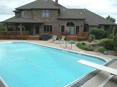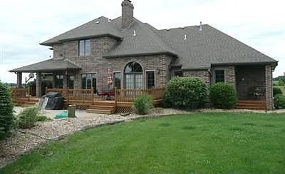 This home on 60+/- acres is a rare find! It has gorgeous woodwork throughout. There is wide oak crown molding, lovely archways trimmed with oak, and 6 panel oak doors. The updated kitchen has custom cabinets, beautiful Shirestone counters, a new kitchen sink, with corner windows to enjoy the view, and new appliances. There is also new lush frise' carpet on the main and upper floor. The large living room has a magnificent double fireplace that also opens to the cozy hearth room. The large master suite on the main floor is a dream, with its own gas fireplace. The basement could easily be a second living quarters. There is a large family room with a fireplace and wet bar, also a 2nd master suite w/ bathroom that has a private entry from the garage. Each floor has separate heat and air conditioning, and there is tons of storage space. The yard is beautifully landscaped, and has an in-ground pool. Additional acreage available totaling 165+/- acres at $4900 per additional acre.