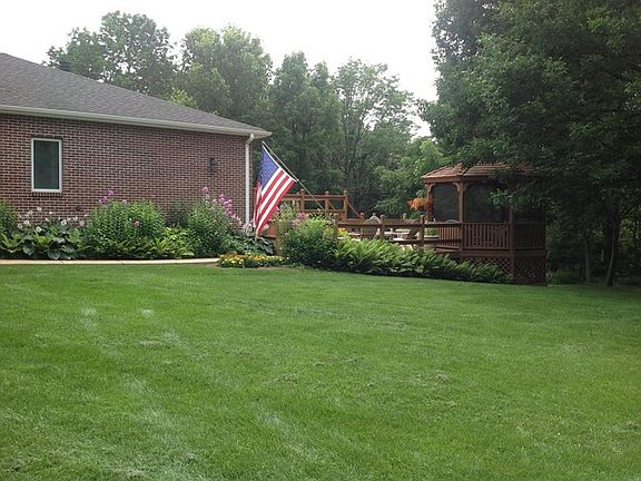 Beautiful custom-built brick ranch home with plenty of space for the family. Walk out from the spacious lower level to the great backyard. French doors in the kitchen lead to the huge deck with fantastic gazebo overlooking wooded ravine. Home has a spacious entry, open floor plan, vaulted ceilings, custom cabinetry and built ins. Bright eat-in kitchen has granite counter tops, under-cabinet lighting, and butcher block island. Formal dining room features french doors & crown molding. Nice master suite with fireplace, crown moldings, large walk-in closet. Master bath has both soaking tub & shower. Lower level has family room & game room with extra tall ceilings, and a workshop with natural light. Lower level bed room and second complete kitchen with all appliances is perfect for in-law suite or college student. Home has many extra touches such as 3 fireplaces and stainless "chef''s sinks" on each level.