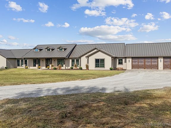 Experience country living at its finest in this stunning 4 bedroom, 2.5 bath Farmhouse on 15 acres For Sale in Chouteau, OK. Built in 2020 with timeless farmhouse character and modern amenities, this property welcomes you with a long, private drive and stately pipe-fence entry. Inside, you’ll find stained concrete floors, a cozy wood-burning stove, dog wash area, and a chef’s dream kitchen featuring commercial-grade appliances, ample prep space, and custom finishes. The master suite includes a spa-inspired bath and an oversized walk-in closet, offering both comfort and luxury. Outdoors, Seamless metal roof and siding for Durability and low Maintenace and a huge back porch overlooks a scenic pond, and acres of peaceful countryside were deer and wildlife roam freely. Whether you’re entertaining, enjoying quiet evenings by the fire, or exploring your land, this property provides the perfect retreat while remaining within easy reach of town conveniences. Move-in ready and built to impress—this is the farmhouse lifestyle you’ve been waiting for! Call today and let's go take a LOOK!