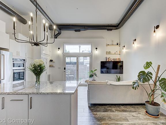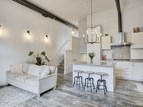 Matterport virtual walkthrough available on Homes. Stunning modern condo in the heart of downtown Royal Oak featuring soaring ceilings, industrial-chic design, and a unique multi-level layout perfect for stylish city living. The bright, open-concept main living area is highlighted by exposed ductwork, dramatic lighting, and a sleek gourmet kitchen with stainless steel appliances, tile backsplash, and a large center island with bar seating. Tall windows and a walkout to a private patio flood the space with natural light, creating an ideal setting for entertaining or relaxing. Both the lower and upper-level bedrooms offer privacy and comfort with their own en suite full bathrooms and generous closet space. The lower level also includes a convenient laundry area with a stacked washer and dryer. Enjoy 2-dedicated parking spots and unbeatable walkability to all the shops, restaurants, and entertainment downtown Royal Oak has to offer. Welcome Home!