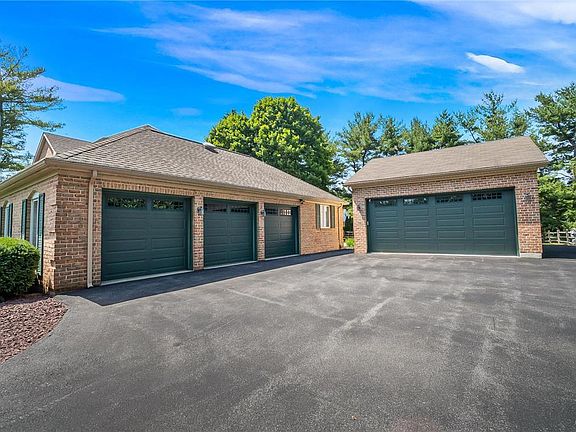 Once in a Lifetime Opportunity to Own this Brick Beauty On Macada Road! This home offers an abundance of space. As you walk through the doors you will be greeted w/ newly finished hardwood floors throughout the foyer, oversized living room, & dining room w/ pocket door. The family room offers a brick fireplace flanked w/ floor to ceiling built-ins & access to a bright sunroom that is just perfect for relaxing. The kitchen has an entertaining flow w/ a built-in wet bar, spacious eating-in area, breakfast bar & walk out to sunroom. Off the Kitchen you will find laundry room w/ access to the patio and in-home office that can also double as a first floor bedroom. The second floor boasts room for all! The master bedroom has plenty of room w/ a walk in closet, built-in vanity, large master bath w/ oversized walk-in shower, large linen closet, and double sinks. The other 3 bedrooms have plenty of room along with wooden closet organizers. The main bath has an extra long-double sink vanity, large linen closet and walk in shower. The upstairs hall is large enough to host a cozy sitting area. Half of the basement offers a finished area that can be used for a rec room or family room w/ the second side useful for storage. Don't miss the beautiful paver patio w/ hot tub & fire pit. Any car lovers dream- a 3 car attached garage, 2 car detached garage, a parking pad beside it with electric hook up and a gorgeous u-shaped driveway. Tons of Extras...Bilco Door, Generac Generator, Shed & more!