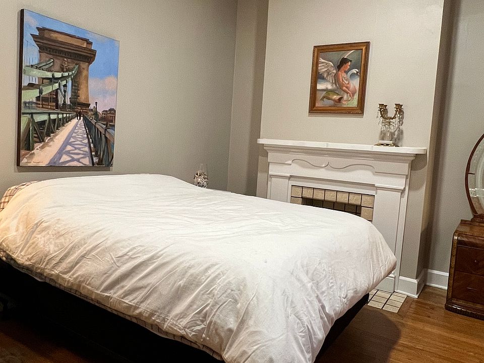 Two decorative fireplacesWell-appointed kitchenSpacious one-bedroom unit