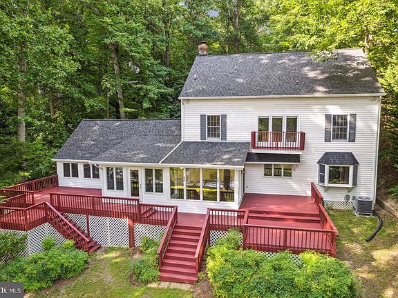ST. LEONARD CREEK WATERFRONT! Move-in ready home, perfect for summer enjoyment. NO HOA!! This colonial is in a very private setting with quiet cove vibes, perfect for full time living or part time use. The location will excite boaters and wildlife enthusiasts alike! Regular activity from hummers, heron, eagle, osprey, kingfisher, pileated woodpecker, otter and more become part of your personal nature story! Beautiful 3680 SF colonial has incredible hardwood floors, brick fireplace and big picture windows. A completely updated kitchen in 2024 includes quartz counters and stainless appliances, creek view from the large trough sink. The main level provides a large home office, formal and casual dining, and the ultimate in expansive living areas. The roof was replaced in 2019. Five large bedrooms includes a primary suite with sitting room and balcony, newly remodeled bath. Water views across the cove frame the old growth wooded shoreline of Morgan Hill Farm. This beautifully maintained and spacious colonial home truly caters to the waterfront setting with multi-zoned outdoor living space and a gentle walk to the private pier. The pier includes a covered slip with 6000 LB sling lift + second 1500 lb lift for smaller boats or PWC. Kayaks and SUPs are also welcomed! Shown by appointment only.