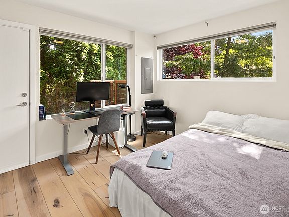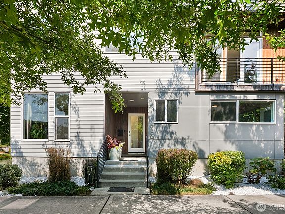 Welcome to this stunning corner-lot end-unit south-facing townhome flooded with natural light, a houseplant-enthusiast's delight! No seasonal affective disorder here with its bright, airy high ceilings, a two-story atrium dining room, & sun-drenched rooftop deck. Large bedroom, patio, bathroom, & spacious office / den downstairs. Entertainer’s kitchen & living area with home theater projector & speakers-perfect for movie night-on the main floor. Primary bedroom with storage galore upstairs. Smart features & fixtures throughout. Located in the quiet part of central Ballard. Walk a short few blocks to multiple bus lines, shops, restaurants, parks, the farmer's market, & more! Highly rated north Seattle schools too. Welcome home!