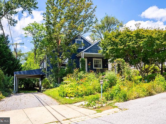 Charming 3-bedroom, 1.5-bath bungalow in Towson's highly sought-after Idlewylde neighborhood, within the Stoneleigh School District. Bright, open floor plan with original hardwood floors, crown and chair molding, arched doorways, and oversized windows. (Finished square footage is approximately 1,238. Tax records may reflect something lower). Updated kitchen features white cabinets, original 1947 Chambers stove, and island/breakfast bar with walkout to a spacious deck overlooking the private rear yard. Two bedrooms and full bath on the main level; large third bedroom upstairs with walk-in closet and ample storage. Finished walkout lower level includes family room, half bath, laundry center, storage, and garage access. Enjoy a covered front porch, expansive rear and side yards with perennial and pollinator flowerbeds, off-street parking with carport and dual driveway access from the front and rear yards. A perfect blend of timeless charm and modern updates in a light, airy, and inviting home — escape the hustle, without being far from the bustle. A true Idlewylde gem with a private yard oasis!