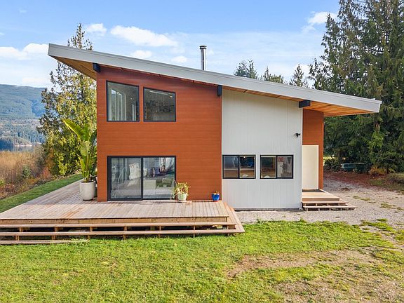 Custom-built West Coast modern home with European design influence on nearly 5 acres of private estate land. This ocean view, light-filled, open-concept 3-bedroom, 3-bathroom + flex room home is built to last with metal roof and siding, quality finishings, concrete floors, and over height ceilings. Opportunity to earn farm status with a fenced orchard and garden, supported by a 1600 gallon rainwater collection system. A 240V generator hook-up with its own sub panel adds peace of mind. Plus a volleyball court, 530 sq ft rental & hot tub. Zoning allows 2 homes and septic system already sized for both. Close to trails and surrounded by other estate properties, very private yet close to all of the amenities of Sechelt—rare, serene, and truly one-of-a-kind. Call today for more info