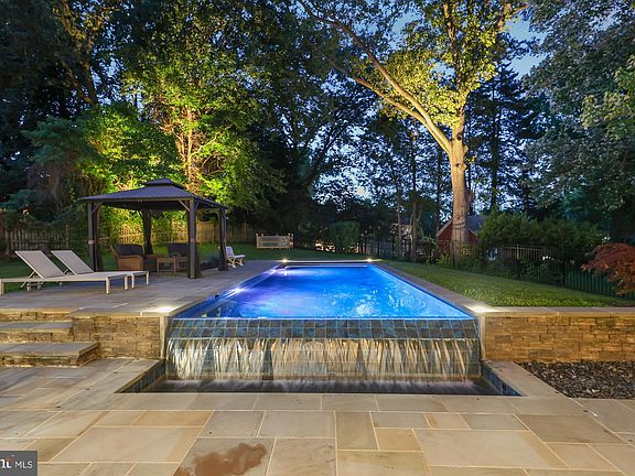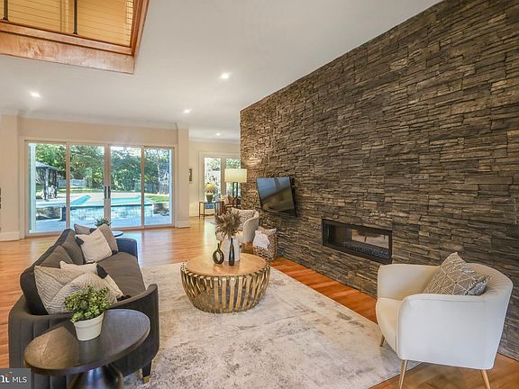 Welcome to this stunning contemporary home in quiet location on a non-thru street with in-ground, salt water pool. This gorgeous four bedroom, four full-bath residence is a private retreat that's only minutes away from DC and MD. With its style, location and privacy, this residence is definitely the one you've been looking for! The front entrance opens to breathtaking views through to the backyard and show-stopping pool with waterfall edge. Gorgeous wood floors throughout the main level warm the space and complement the butcher block floating stairs with cable railing. Luxury finishes include crown molding throughout and recessed lighting. The light-filled home's foyer is open to the top floor enhancing its spacious feel and highlighting the striking stacked stone wall with 2-sided gas fireplace. The formal dining room has large windows and is gracefully illuminated by a gorgeous chandelier. The kitchen boasts a huge island, large walk-in pantry, wine fridge and a wet bar. The main floor also has a large family room, library with built-in bookshelves and gas fireplace, and a full bath. Head up to the second-floor mezzanine, which is open to the foyer and living room below, every window on this floor has private tree-top views! The massive primary retreat has a large walk-in closet with skylight and wall safe. The primary bath includes double sinks, oversized shower, soaking tub and a private water closet with bidet. There is also a large open area that is perfect for an office, play room or yoga retreat, the possibilities are endless! Two additional bedrooms share a Jack and Jill bath with double sinks and bathtub. The laundry room is also conveniently located on this level. The lower level includes a large rec room with 2-sided wet bar and its own gas fireplace along with an additional bedroom, full bath, exercise room and utility room with additional storage. There is also access to the 2-car garage and front yard. The home feeds into the coveted McLean High School pyramid. This exceptional property is a timeless treasure, seamlessly blending sophistication, functionality and beauty. Don't miss your opportunity to own this piece of paradise!