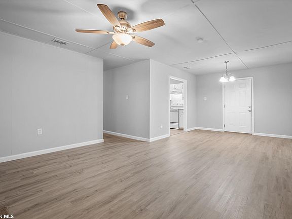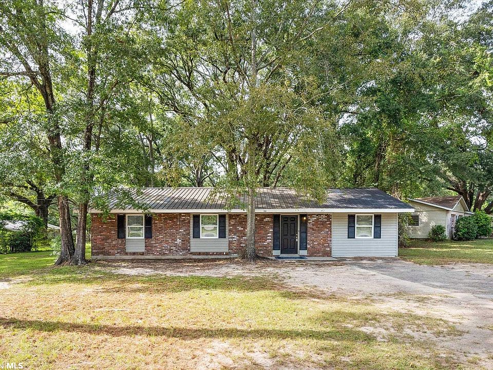 A complete remodel has just been completed on this fantastic four bedroom, two bath, ranch that is a mix of brick and vinyl on the outside and, along with the metal roof, it is simply easy to maintain and stands the test of time. Close to USA and shopping one can enjoy morning coffee on the oversized covered front porch area that extends the entire length of the home. When family and friends arrive to watch the game, invite them into the living room where they will notice the new wood look vinyl plank flooring that extends throughout every room in the entire home. The living room is open to the dining area where formal or informal meals can be lingered over and enjoyed. An archway to the left of the dining area leads to the kitchen where lots of pristine white cabinetry and loads of counter space make meal preparation a pleasure for the chef of the family. This home features a split bedroom plan with the primary ensuite off the living area. There is plenty of room to stretch out and simply use as a bedroom but there is space for a sitting area or a small office. The adjoining bath features a tub/shower combination, perfect for the morning rush. On the opposite end of the home are three generous-sized guest bedrooms with good-sized closets and lots of natural light. There is a guest bath conveniently located to the guest bedrooms that has a tub/shower combination. Adjacent to the back door is a nice sized laundry room that will make that chore less of a burden. Step outside the back door to a small deck and enjoy the tranquility of the partially fenced corner lot where an evening barbeque with family and friends can lead into any type of game desired or just spend a quiet evening at home enjoying a glass of wine. The home is situated on an angle with most of the home facing the service road to Middle Ring with the side of the home on Kyle Road. To locate the property enter 1361 Middle Ring Road in a GPS.