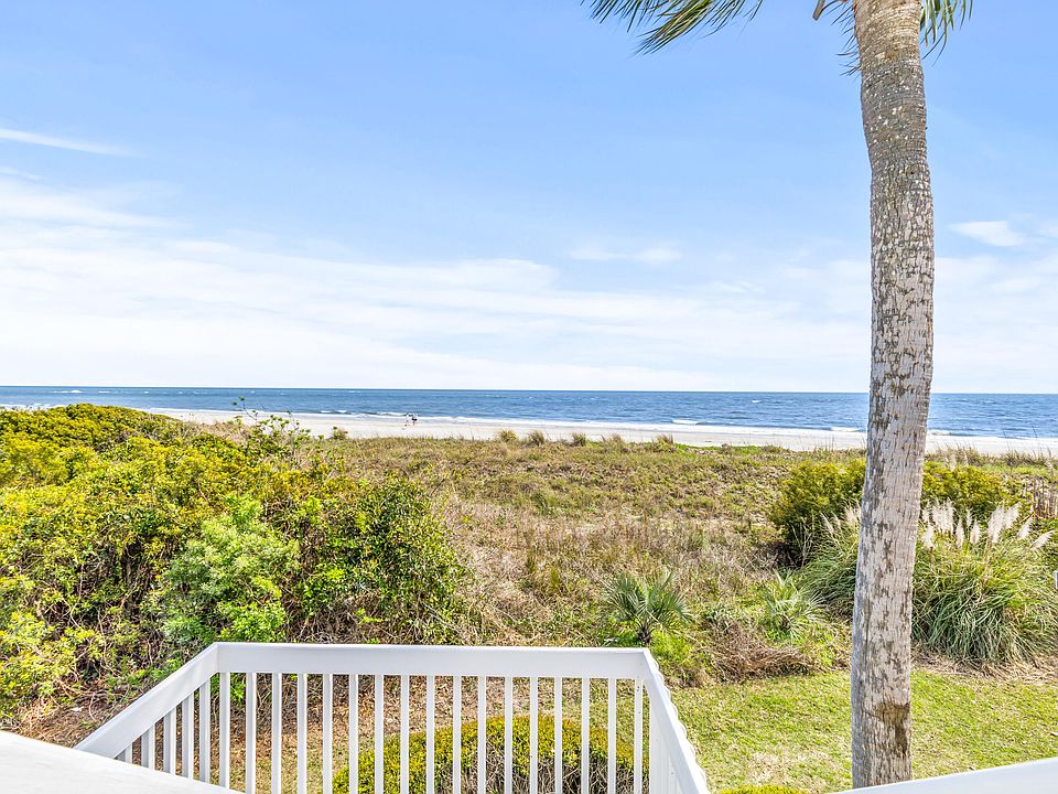 Welcome to 31 Beach Club Villas, a beautifully renovated oceanfront townhouse in the exclusive Wild Dunes resort on Isle of Palms. This turnkey 3-bedroom, 3-bath villa offers sweeping ocean views, direct beach access, and effortless coastal living.The bright, open floor plan showcases high-end finishes, including oak flooring, plantation shutters, shiplap accents, recessed lighting, and a fully updated kitchen with custom cabinetry, granite countertops, tile backsplash, and premium stainless-steel appliances. A screened porch off the main living area invites you to relax and enjoy the ocean breeze with the beach just steps away.The main level includes a spacious guest bedroom, full bath, and a convenient desk nook.Upstairs, the oceanfront primary suite features a private balcony and a beautifully updated en-suite bath. Another en-suite guest bedroom and laundry area complete the upper floor. The ground level offers a large garage with storage, an outdoor shower, parking for a car and golf cart, plus a covered carport. This villa boasts a strong rental history, consistently generating over six figures, and is being sold furnished for immediate enjoyment. Owners enjoy access to two community pools and the world-class amenities of Wild Dunes, including golf, tennis, pickleball, spa services, dining, and more.