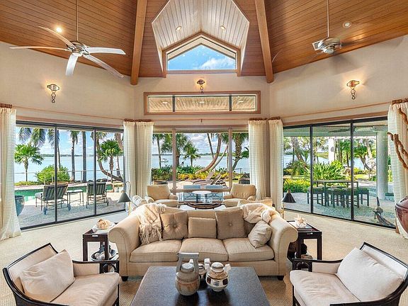 This spectacular waterfront estate is located on nearly an acre of land with 291 ft of waterfront. The home offers stunning views of the endless blue water and is perfect for entertaining with its spacious layout and lush tropical landscaping.The home features 5,438 square feet of living space with 4 bedrooms, 4.5 baths, and a 2.5 car garage. The pool is 50 feet long and is surrounded by lush landscaping.This home is perfect for those who love the waterfront lifestyle and want a home that is both spacious and luxurious. * Whether you're a boater, golfer, or tennis player, the community has it all, including a full-service marina just 59 miles from the Bahamas and minutes from the inlet, able to accommodate up to 125 foot vessel. The Sailfish Point Community is also located within minutes of a Private airport suitable for landing large private aircraft Witham Field Stuart Florida with US Customs on-site. Sailfish Point offers the ultimate Florida resort lifestyle with its oceanfront country club, fine & casual dining, Har-Tru tennis courts, Jack Nicklaus "Signature" golf course, state-of-the-art fitness center & spa, helipad, 1.5 miles of gorgeous beach, and 24/7 guarded & patrolled security for peace of mind. Don't miss this once-in-a-lifetime chance to own a piece of luxury oceanfront living!