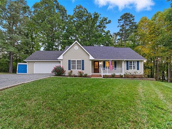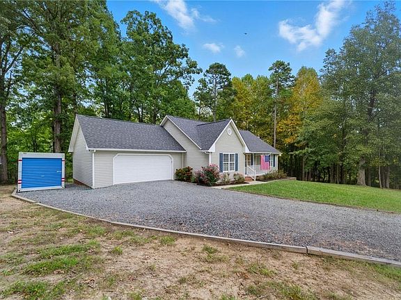 Welcome to this beautifully updated ranch in the heart of Pleasant Garden! Sitting on over an acre in the desirable Macon Glen neighborhood, this 3-bedroom, 2-bath home offers both comfort and modern upgrades. Inside, you’ll find a spacious vaulted great room with a cozy fireplace, a stunning kitchen with stainless steel appliances, subway tile backsplash, and an oversized pantry. The primary suite is a retreat with a large walk-in closet and spa-style bath featuring a tiled shower and double vanity. Step outside to enjoy a covered front porch, an expansive back deck perfect for gatherings, and a private wooded lot. A detached building provides a finished office/flex space with heating and cooling — ideal for remote work, hobbies, or studio needs. With fresh updates throughout and move-in ready appeal, this home combines peaceful living with modern convenience. No HOA. Roof and deck less than 2 years old.
