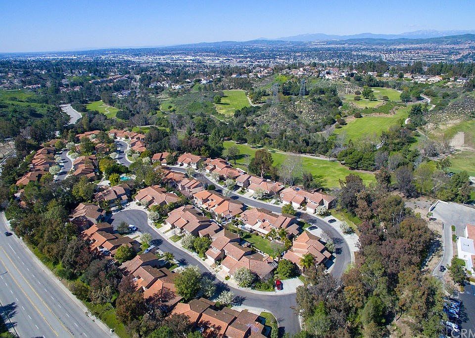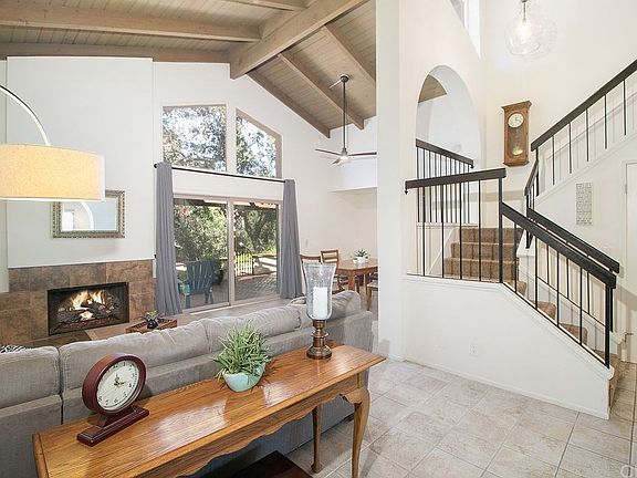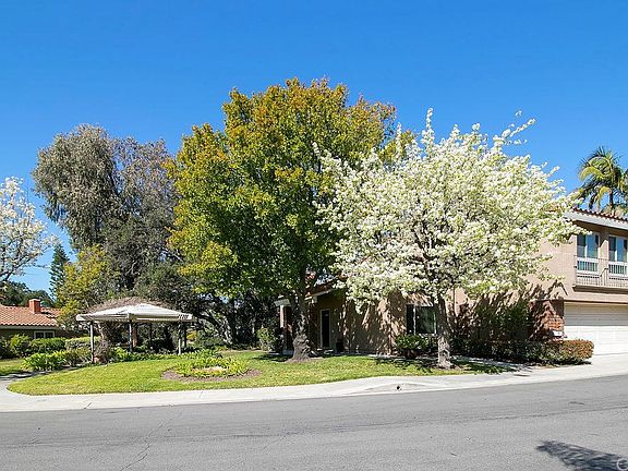 Backs to the golf course with views and surrounded by nature! Nicely situated in a small, quiet, gated community is this beautiful home that is the essence of indoor/outdoor, easy living. A peaceful, premium lot with abundant trees and spacious greenbelts. High cathedral ceilings provide an open feel. The fireside family room flows nicely to the dining area and out to the low maintenance patio that is peaceful and private. Mature trees provide abundant shade and are filled with the sounds of nature making for great outdoor relaxing & entertaining â day & night. All bedrooms are upstairs and include a well-sized master bedroom with walk-in closet, two additional bedrooms and third bathroom. A downstairs den that could be converted to a bedroom. The kitchen is light & bright and opens to a second eating area that flows to outdoor patio. Two-car attached garage with guest parking. Close to the community pool. Walking distance to golf, nature center, saddle club, grocery & CVS and nearby trails, parks and Anaheim Hills Elementary. A great place to live.