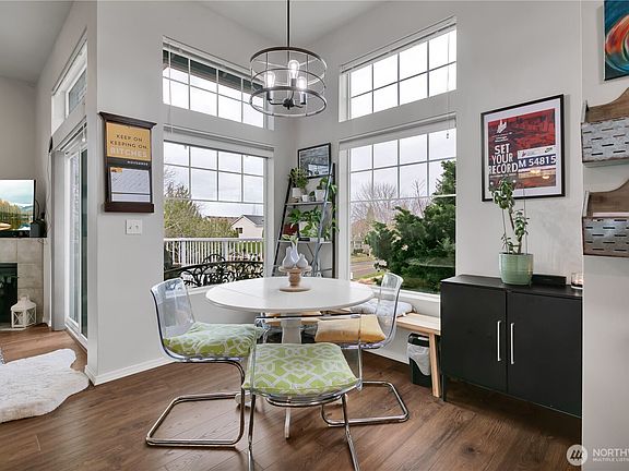 Welcome home to Carrara at Lakeland~ where bright, comfortable living meets a highly desirable community.This top-floor end unit is filled w/natural light & offers a welcoming, open layout. The spacious great room extends to a private deck—ideal for relaxing or enjoying your morning coffee. Fresh, neutral paint throughout provides a clean and modern feel from the moment you step inside. LVP flooring make cleaning a breeze. Unwind by the cozy fireplace or enjoy cooking in the open kitchen featuring maple cabinetry, ample counter space, and new appliances. The primary suite feels spacious w/vaulted ceilings, a walk-in closet, & a private bath complete w/a soaking tub & dual sinks. Close to schools, shopping & easy access to HWY167