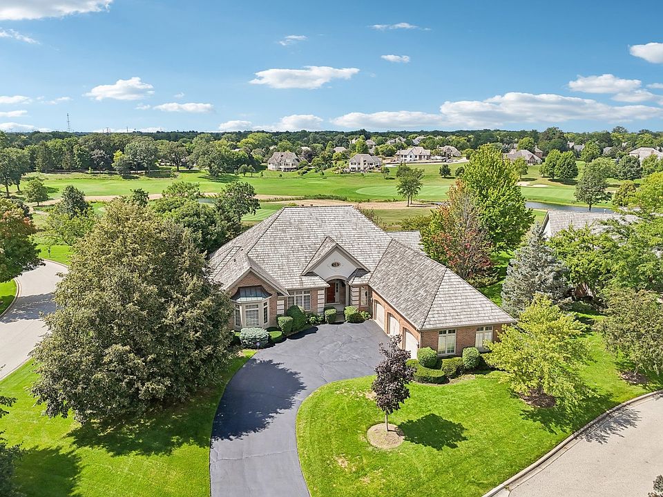 Exceptional Spacious Quality Built Ranch with Finished Walkout in Desirable Merit Club Featuring Expansive Golf Course and Pond Views! The One You Have Been Waiting For! Welcoming 2 Story Grand Foyer Invites You In to This Home Boasting Extensive Upgrades Throughout. Gleaming Hardwood Floors Throughout Most of Main Floor, Family Room Built-Ins, Luxury Kitchen and Vaulted Sunroom are Some of the Amenities You Will Appreciate. The 2 Story Great Room with Gas Fireplace Flanked by Patio Doors Offer Gorgeous Peaceful Views and Great Entertaining Space. Large Formal Dining Room With Tray Ceiling Will Be Home to Many Celebrations and Special Occasions. The Family Room Features Built-In Cabinetry and Shelving plus a Lovely Bay Window to Enjoy the Views. The Gourmet Kitchen Offers Many Upgrades Including Gorgeous Cabinetry, Convenient Island with 2nd Sink, Solid Surface Counters, Planning Desk, Appliance Garage and Luxury Sub Zero and Bosch Appliances. The Recently Added Vaulted Sunroom Will be One of Your Favorite Places to Enjoy a Quiet Read or Spirited Entertaining. Main Floor Laundry Has Great Workspace and Plentiful Built-In Cabinetry. Elegant Powder Room Features Furniture Style Sink Cabinet and Decorator Finishes. The Primary Bedroom is a Spacious Retreat with Tray Ceiling, Bay Window, Sitting Room and Huge Walk-In Closet with Built-Ins. The Adjacent Primary Bath Offers Every Desired Feature Including Double Sinks with Solid Surface Counters, Seamless Shower Door, Whirlpool Tub, Linen Closet and Private Commode. You Will Love the Convenience of Both Secondary Main Floor Bedrooms Each Having A Private Ensuite Bath and Spacious Closet. Step Down the Open Staircase to the Huge Lower Level Walkout Finished Basement and Enjoy So Many Features! The Huge Main Open Recreation Area Features a Brick Fireplace and Large Wetbar with Tasteful Cabinetry and Granite Counter. A 4th Bedroom with Walk-In Closet and Direct Access to a Full Bath Offers Exceptional Convenience for Family or Guests. So Much Finished Space but Wait........... You'll Appreciate the Huge Storage Spaces too as Well as Huge 3 Car Garage! Outdoor Areas for Relaxation or Entertaining Include the Spacious Main Floor Deck and Lower Level Walkout Brick Patio. Newer Roof approx 3 yrs, Along with Exterior Paint and Deck Refresh approx 3 years Shows Pride of Ownership of this Lovely Home. Desirable Culdesac Location too! The Peaceful Winding Streets and Gorgeous Views of this Merit Club Setting are Unsurpassed in the Area. Come See What You've Been Dreaming of and Make This Home Yours!