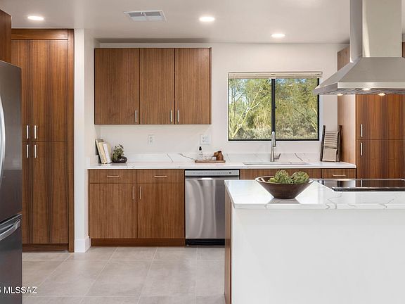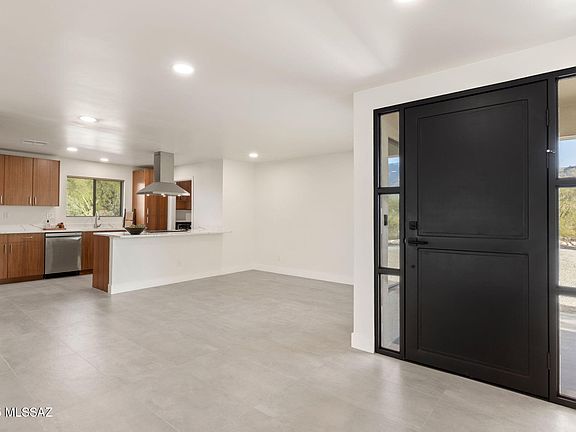 Set on an elevated lot in the Catalina Foothills, this modern home captures 360 views from the dramatic Catalina peaks to the city lights below. Designed to feel both grounded and expansive, the home is filled with natural light and clean architectural lines that frame the landscape from every room.The open-concept kitchen, dining, and living areas flow seamlessly for effortless connection and entertaining. Four bedrooms and three baths offer a balance of privacy and gathering space, all finished with understated elegance.Outside, a covered patio sets the stage for Tucson's desert drama; sunrises, monsoon skies, and glowing city evenings. Located within the top-rated Catalina Foothills School District, this home combines refined modern design with exceptional livability.