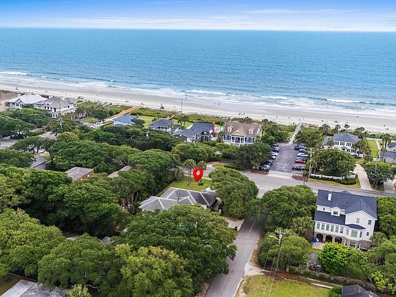 Nestled on the prestigious Golden Mile in Myrtle Beach, just steps from the beach, this charming home blends vintage character with modern updates. The main residence is ranch style and offers 3 bedrooms and 2 baths, featuring a formal living room, cozy family room, and a sunroom with built-in shelving. The kitchen boasts stainless steel appliances, solid surface countertops and backsplash, a breakfast bar, and a dedicated dining area - ideal for both everyday living and entertaining. The primary suite opens directly to the main patio and includes a master bath with a walk-in shower and vessel sink. Two guest bedrooms share a Jack-and-Jill bathroom with a contemporary vanity and vessel sink. Throughout the home, you'll find delightful vintage touches like tiled bathrooms, wall paneling, and wooden window cornices. Step outside to enjoy any of the three patio areas, including a large brick-paver patio with a private pool, sun deck, and brick privacy wall. The attached two-car side-load garage features a full bath, laundry, and a spacious workshop area, with Lots of outdoor parking. Above the garage, a guest apartment - accessible via spiral staircase or outdoor staircase - offers a living area with built-in cabinetry and Murphy bed, kitchenette and dining nook, separate bedroom, full bath with tiled shower, and a balcony with ocean views overlooking the pool. The fully fenced yard, gated driveway, and unbeatable location across from the beach, near top dining, shopping, and entertainment, make this a rare Golden Mile gem.