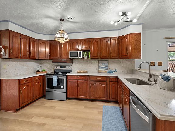 - Features: Breakfast Bar, Stainless Steel Appliances, Solid Surface Counters