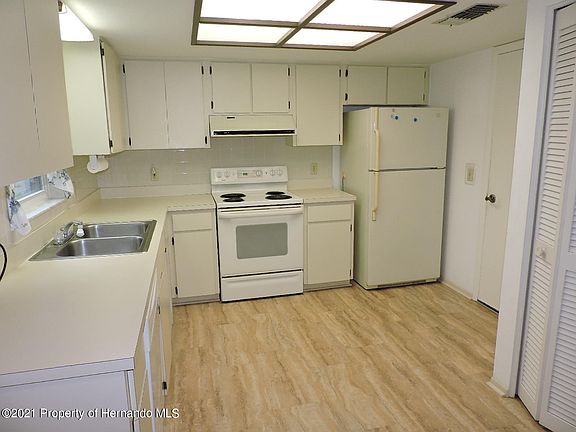 Beautiful landscaping in the front of the home. Nice open living area with a bay window in the front. Dining room is just off of the kitchen and has slider door access to the enclosed porch area. The kitchen has an eat in area and a closet pantry. Great neutral colors in the bathrooms. The bedrooms are both spacious. Cabinet storage available in the garage and the back yard is very lush with plants and trees. Timber Pines, a 55+ Gated Community, With 4 Golf Courses, Country Club, Remodeled Restaurant And Bar With Multiple TV Screens, 2 Pools, Fitness Center, Tennis And Pickle Ball Courts, Bocce Ball, Billiards Room And More Than 100 Different Clubs. Spectrum Cable, 2 boxes and High-Speed Internet Are Also Included In the HOA.
