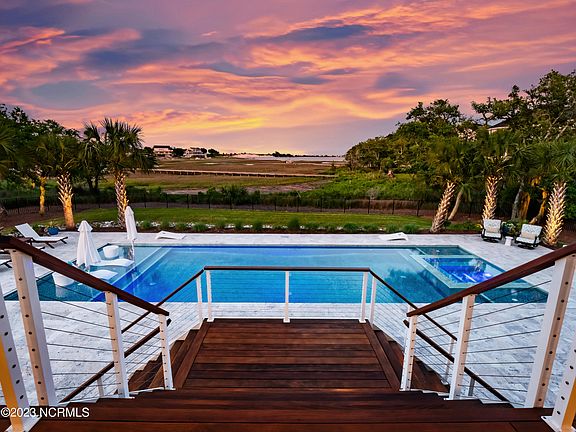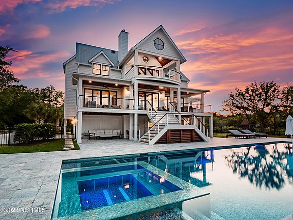 Privacy and views abound from this spectacular coastal farm house! Overlooking a picturesque tidal basin with views of the Intracoastal Waterway and private pier with lift. This completely remodeled home is surrounded by live oaks and palm trees on 1.27 acres on Cedar Island off Greenville Loop Road. The four bedroom, three and a half bath residence includes top of the line appointments, over 1300 square feet of covered porches, a full house generator, walnut floors, stainless appliances including a gas cooktop, standing seam metal roof, 2 HVAC units (2017/2018) salt water pool with heated spa and electric cover.