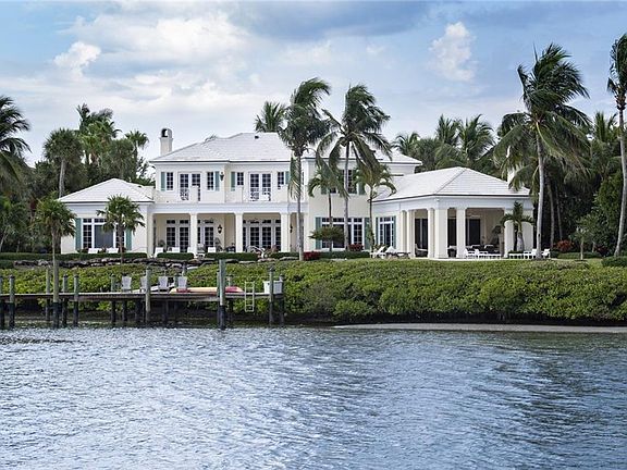 Spectacular waterfront estate with broad views of river and intracoastal. Casual elegance greets guests entering great room featuring floor to ceiling fireplace, coffered ceiling with decorative silver leaf finish & series of French doors to covered veranda. Chef's kitchen with center island features high end appliances & finishes. Main Level master suite is a private oasis; highlights include cherry wood floors, plantation shutters, master laundry & luxurious master bath. Main floor also showcases morning room, study, family room & main floor laundry; Jerusalem limestone floors and decorative moldings throughout. Covered loggia set to entertain; stone floors, fireplace and summer kitchen. 5 second floor en-suite guest bedrooms & laundry. 50' salt water lap pool, private dock with 2 lifts of 4,500 lbs. and 16,000 lbs.