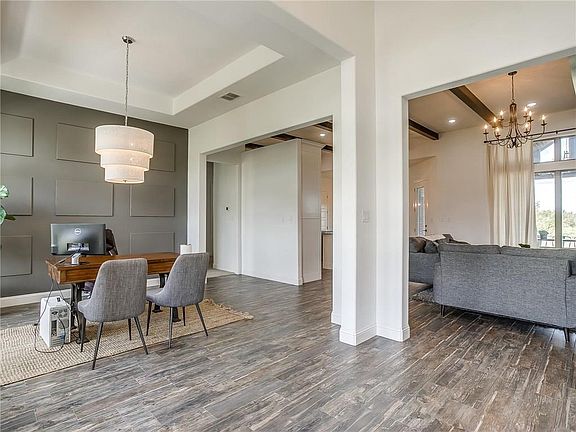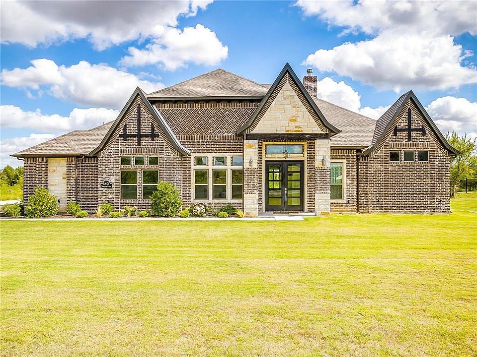 Exquisite country home. Magnolia meets Godley! 1.638 acres of quiet bliss. 4 bed, 3.5 bath, 3 car. Beautiful double front doors. Wood finish tile floors throughout. Formal dining opens to your spacious living with stone fireplace & floor to ceiling windows. Take in your gorgeous kitchen. Double island, custom cabinets, granite counters, stainless steel appliances, gas cooktop, custom backsplash, walk in pantry. Utility features a barn door, half bath, cabinets & sink. Master suite has a unique wood wall finish & oversized bathroom. Large shower, free standing tub, double sinks & Huge closet. Every entertainer's dream is right out your back door. Patio space for days, built in grill & V grooved finished ceiling.